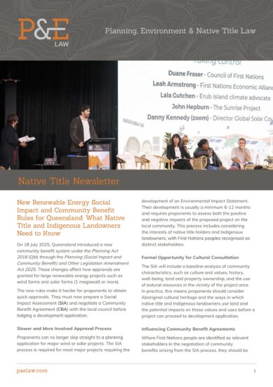 New Renewable Energy Social Impact and Community Benefit Rules for Queensland: What Native Title and Indigenous Landowners Need to Know